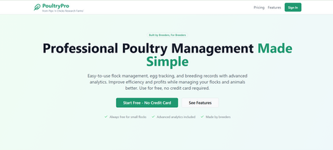 Designed with simplicity and scalability in mind, Poultry Pro is always free for small flocks, with no credit card required. It’s built to help producers improve productivity, animal welfare, and profitability — all in one place.